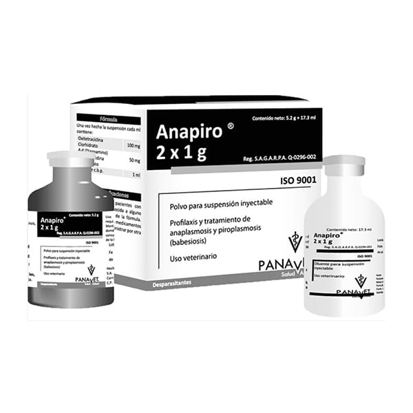 Específico para el tratamiento de anaplasmosis y piroplasmosis. Antiparasitario de doble acción.